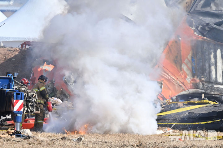 チェジュ航空事故の旅客機の残骸から出火(3/3)