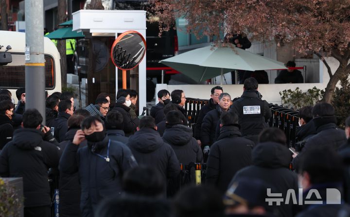 逮捕状執行のため韓国大統領官邸前に集まった警察官たち /ソウル(4/7)