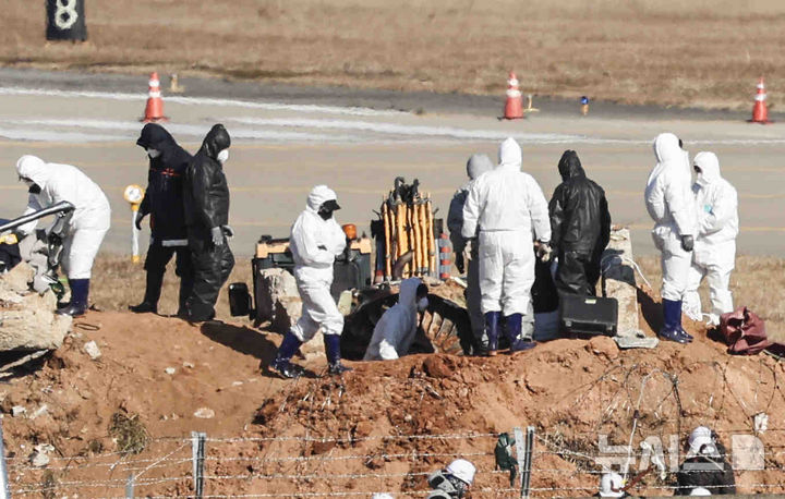 旅客機のエンジンを確認する韓米の調査団(11/14)
