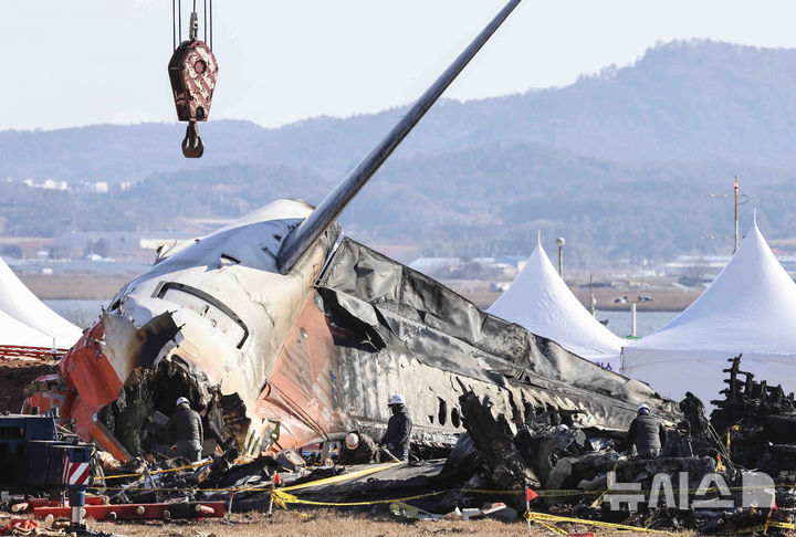 旅客機のエンジンを確認する韓米の調査団(13/14)