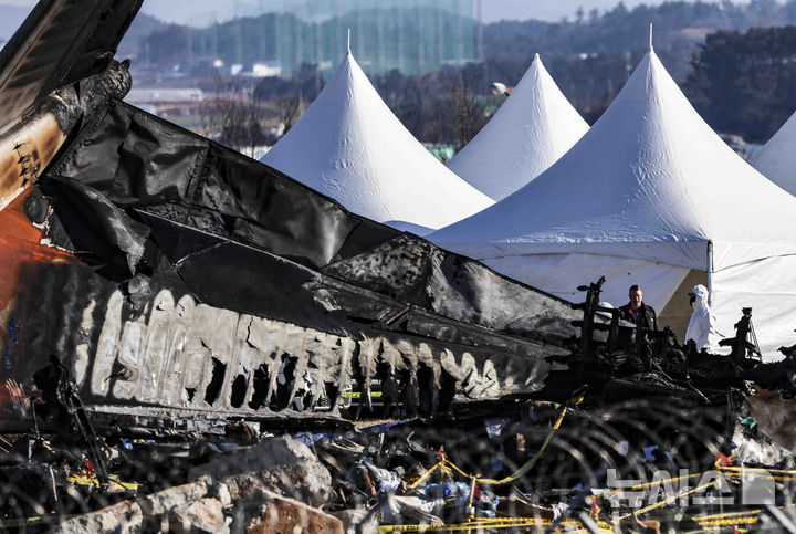 旅客機のエンジンを確認する韓米の調査団(7/14)