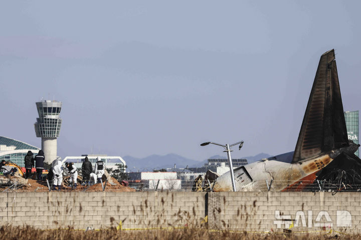 旅客機のエンジンを確認する韓米の調査団(9/14)