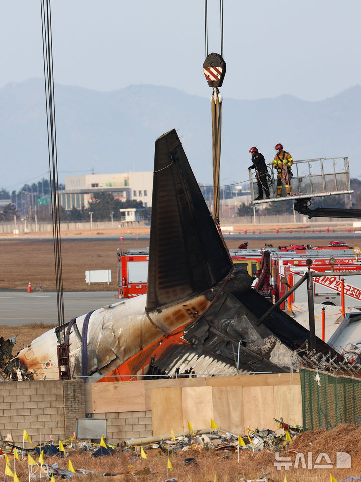 惨事から六日…クレーンで吊り上げられた事故機の尾翼部分(4/12)