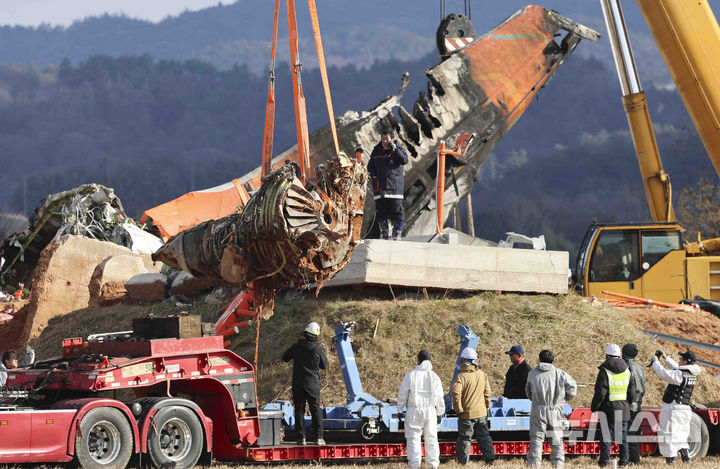 吊り上げられる事故機の2基目のエンジン(5/10)