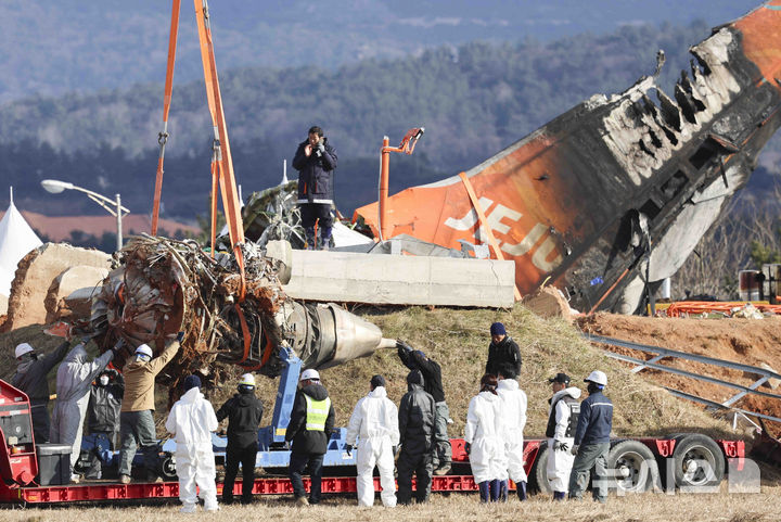 吊り上げられる事故機の2基目のエンジン(9/10)