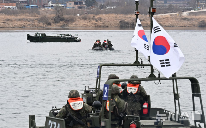 韓国陸軍第7工兵旅団 極寒期諸兵協同渡河訓練を実施 /京畿道(10/10)