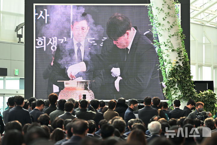 チェジュ航空旅客機事故合同追悼式典が開かれた務安空港(10/21)
