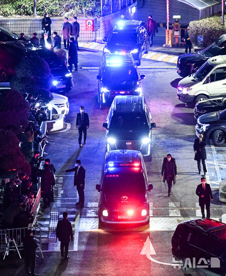 令状実質審査を終えて裁判所を離れる尹大統領の護送車列(2/7)