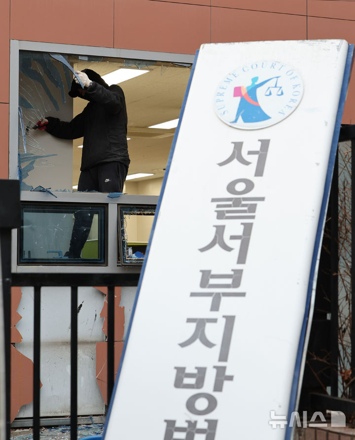 破壊されたソウル西部地裁で清掃作業開始(13/17)