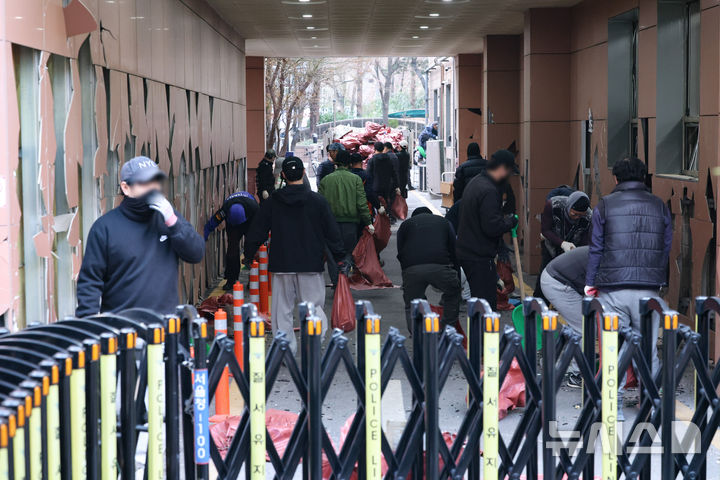 破壊されたソウル西部地裁で清掃作業開始(8/17)