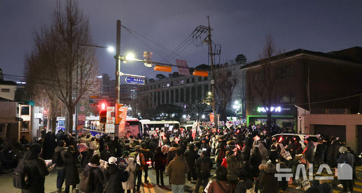 憲法裁判所前で違法集会を続ける尹大統領派のデモ隊 /ソウル(3/11)
