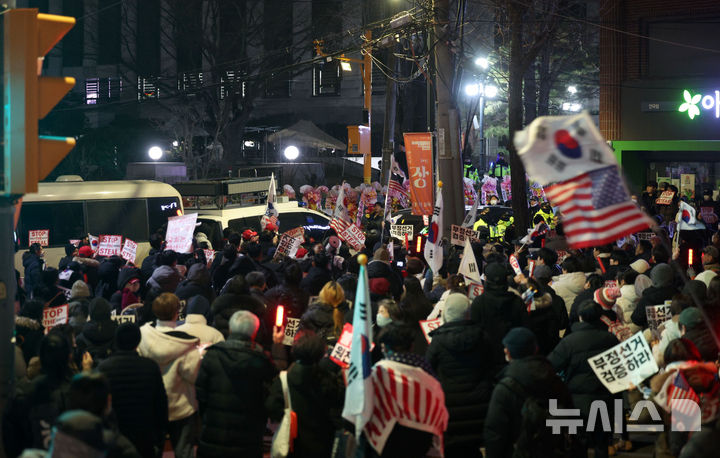 憲法裁判所前で違法集会を続ける尹大統領派のデモ隊 /ソウル(4/11)