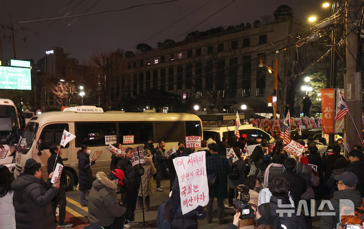 憲法裁判所前で違法集会を続ける尹大統領派のデモ隊 /ソウル(9/11)