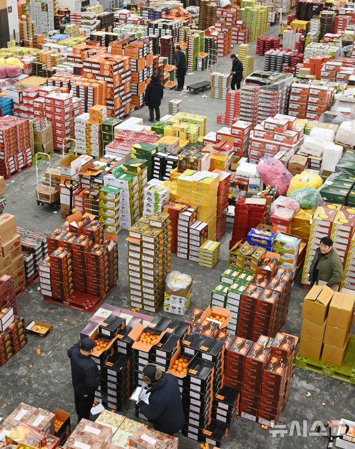旧正月を前に山積みになった果物詰め合わせセット /京畿道(5/8)