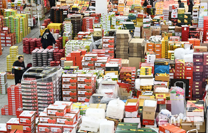 旧正月を前に山積みになった果物詰め合わせセット /京畿道(8/8)