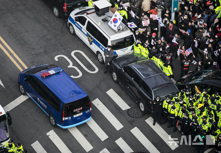 支持者の傍らを通過する尹大統領の護送車両(2/9)
