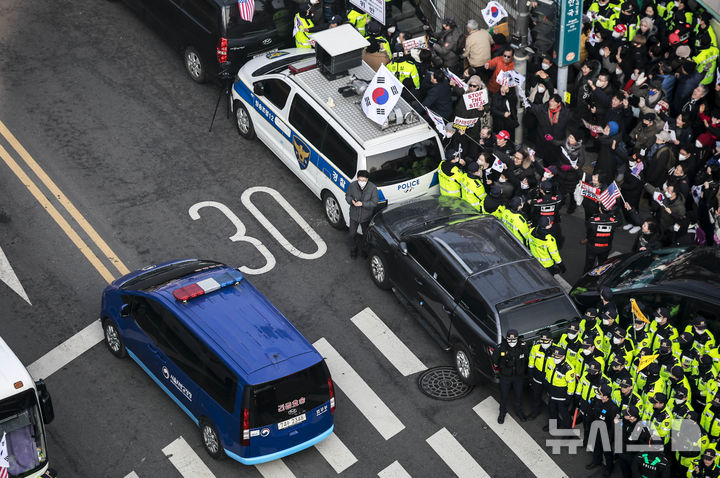 支持者の傍らを通過する尹大統領の護送車両(4/9)