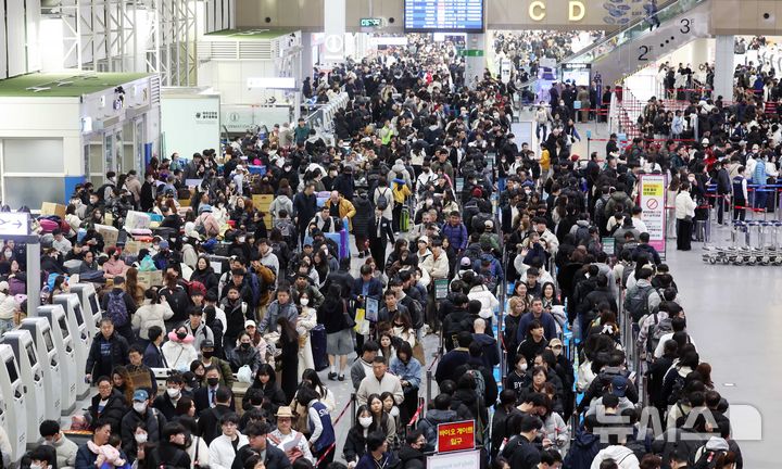 旧正月の連休を海外で過ごす旅行客が集まる金海国際空港(2/10)