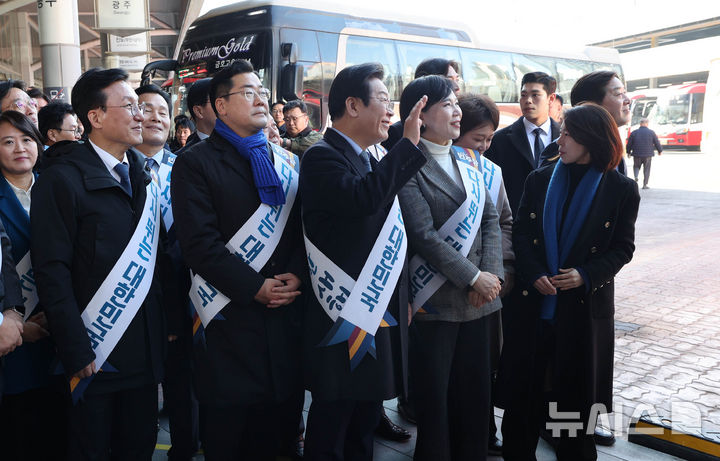 旧正月の帰省のあいさつをする李在明代表と民主党指導部(2/8)