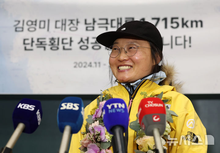 南極大陸単独スキー横断に成功したキム・ヨンミ隊長が帰国(4/10)