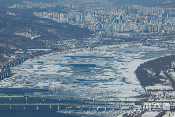 寒波で凍り付いた漢江(4/13)