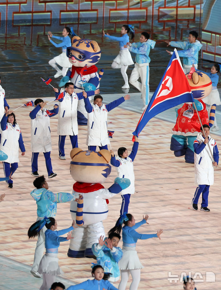 2025ハルビン冬季アジア大会の開会式で入場する北朝鮮(2/11)