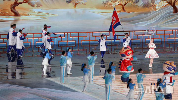 2025ハルビン冬季アジア大会の開会式で入場する北朝鮮(8/11)