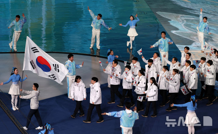 2025ハルビン冬季アジア大会の開会式で入場する韓国選手団(5/13)