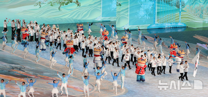 2025ハルビン冬季アジア大会の開会式で入場する韓国選手団(7/13)