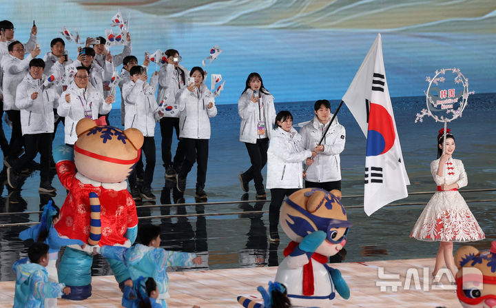 2025ハルビン冬季アジア大会の開会式で入場する韓国選手団(10/13)