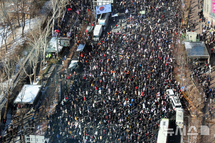 大規模集会を開く「尹錫悦大統領弾劾反対」の市民(8/9)