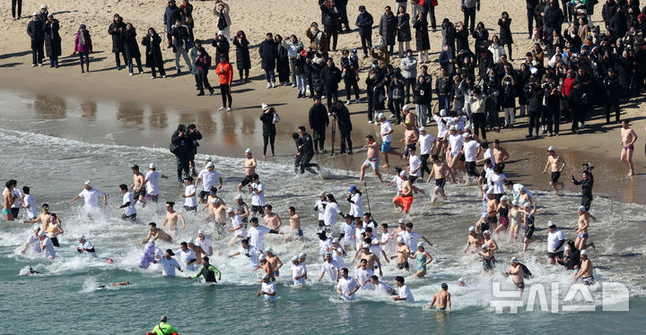 寒波の中、冬の海に「ザブン」 /釜山(2/10)