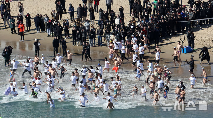 寒波の中、冬の海に「ザブン」 /釜山(4/10)