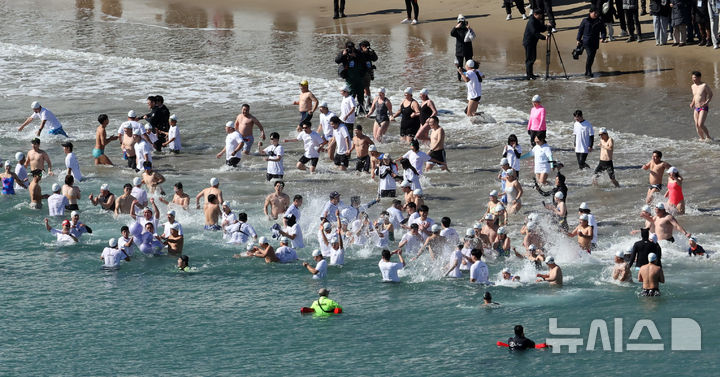 寒波の中、冬の海に「ザブン」 /釜山(8/10)