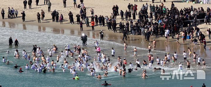 寒波の中、冬の海に「ザブン」 /釜山(10/10)