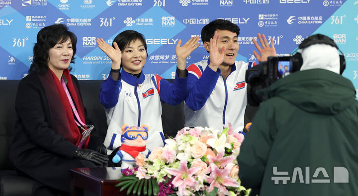フィギュア:ペアの演技を披露する北朝鮮の廉大鈺とハン・クムチョル=冬季アジア大会(4/21)
