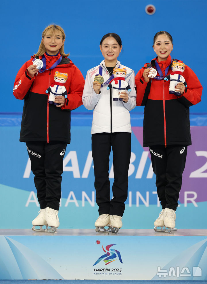 フィギュア:金彩然 喜びの金メダル=冬季アジア大会(13/18)