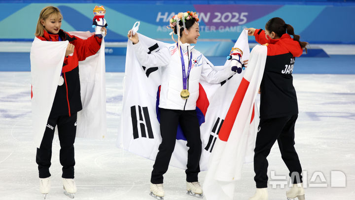 フィギュア:金彩然 喜びの金メダル=冬季アジア大会(17/18)