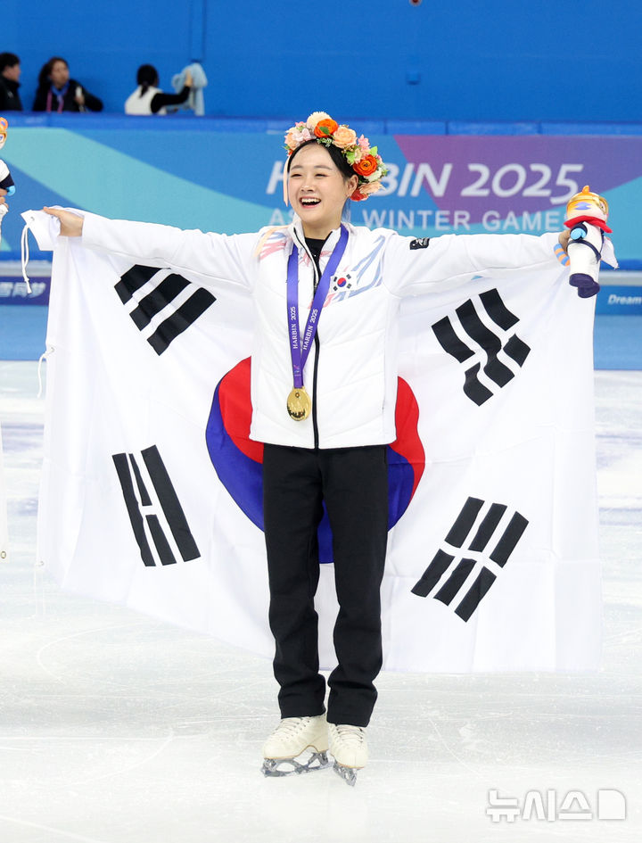 フィギュア:金彩然 喜びの金メダル=冬季アジア大会(3/18)