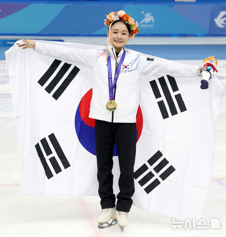 フィギュア:金彩然 喜びの金メダル=冬季アジア大会(6/18)