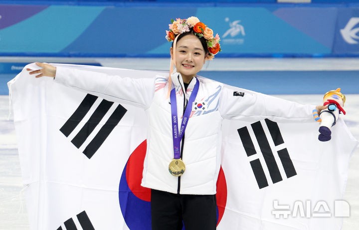 フィギュア:金彩然 喜びの金メダル=冬季アジア大会(7/18)