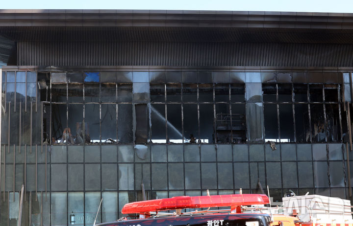 複合リゾート火災現場で残火処理 =釜山(2/13)