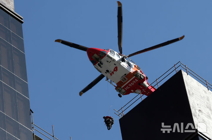 複合リゾート火災現場で残火処理 =釜山(3/13)