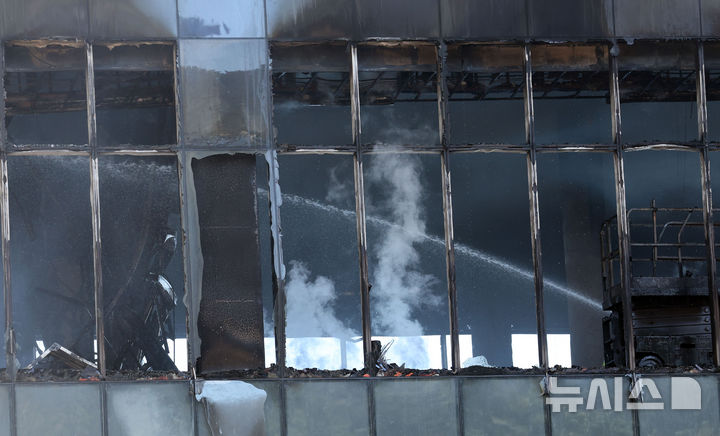 複合リゾート火災現場で残火処理 =釜山(4/13)