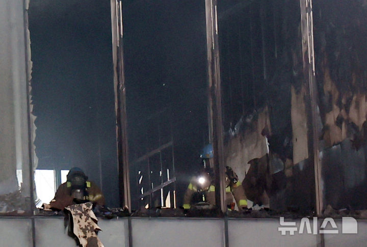 複合リゾート火災現場で残火処理 =釜山(8/13)