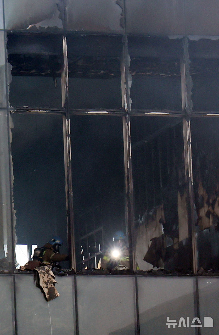 複合リゾート火災現場で残火処理 =釜山(9/13)