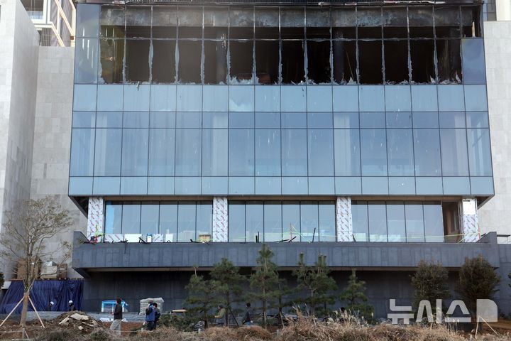 複合リゾート火災現場で残火処理 =釜山(10/13)