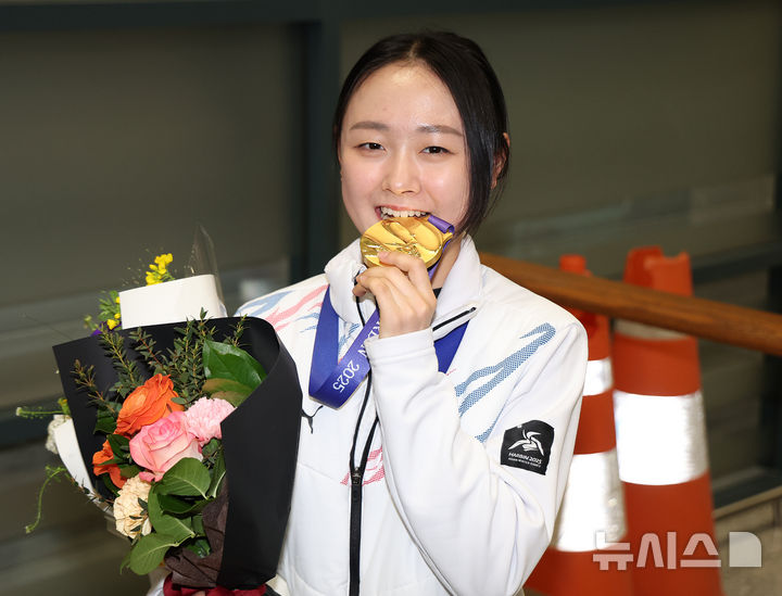 フィギュア:金メダルを披露する車俊煥と金彩然=冬季アジア大会(9/11)