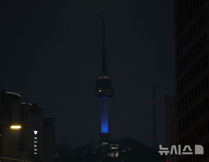 韓日国交正常化60周年を記念する南山ソウルタワーのライトアップ(3/5)