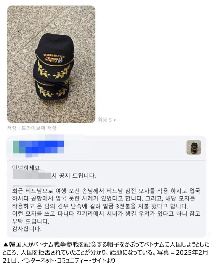 「ベトナム戦争参戦」と書かれた帽子かぶった韓国人、現地で入国拒否…罰金45万円科される(2/2)